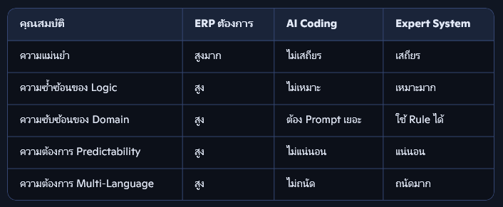 แต่ควรสร้างด้วย Expert System + AI Coding ( เฉพาะงานย่อย )